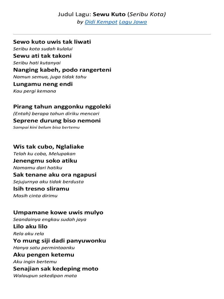Chord Gitar Lagu Sewu Kuto Kunci Gitar Dan Lirik Lagu Didi Kempot Tribun Lampung from cdn-2.tstatic.net We did not find results for: Check spelling or type a new query. Maybe you would like to learn more about one of these?