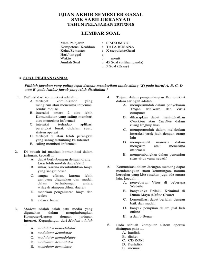 Soal Pas Sikomdig Kls 10 Semester 1 - Soal Pat Uas Bahasa Indonesia Kelas 10 Tahun 2021 Lengkap Dengan Jawabannya : Komunikasi menggunakan perangkat komputer dan dilakukan secara tunda.